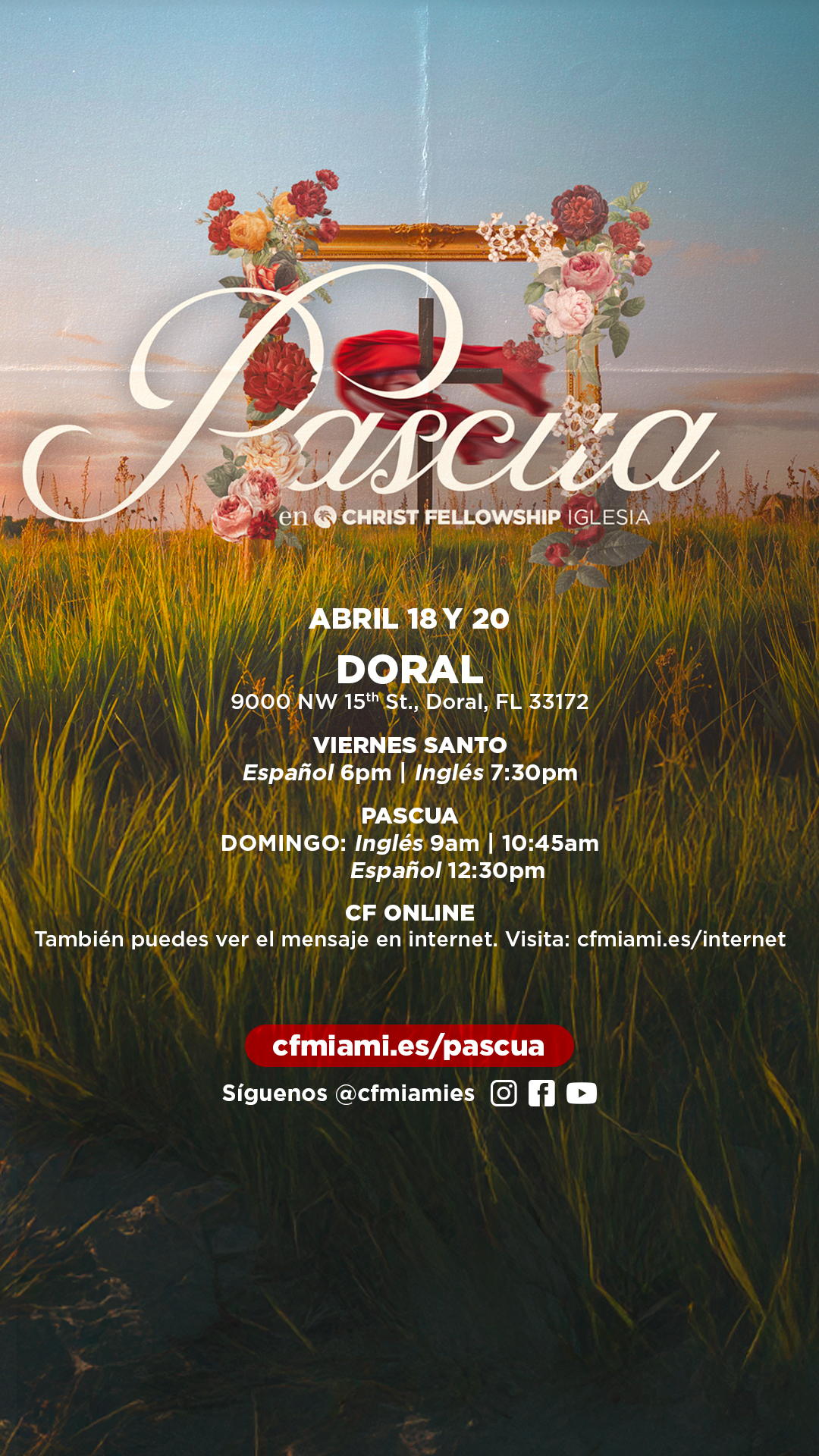 También puedes disfrutar del mensaje en inglés y español por internet en nuestra página web, la aplicación CF Miami, Facebook Live y YouTube. Síguenos @cfmiami y @cfmiamies en todas las redes sociales.